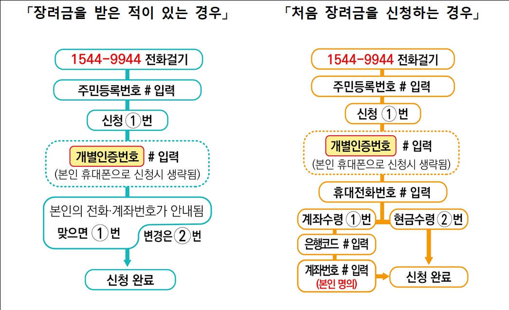 또한 자동응답전화 ☎1544-9944로 연결 후 음성안내에 따라 주민등록번호와 개별인증번호(안내문에 있는 숫자 8자리)를 입력하여 신청합니다.