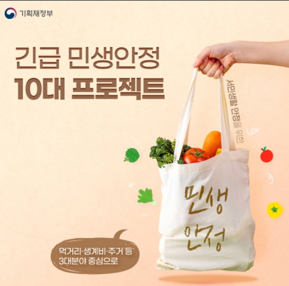 정부가 민생안정을 위해 서민생활안정을 위한 먹거리·생계비·주거 등을 중심으로 '긴급 민생 안정 10대 프로젝트'를 마련했습니다. 가장 중요한 생계비 부담 경감에 대한 내용도 함께 살펴보겠습니다.