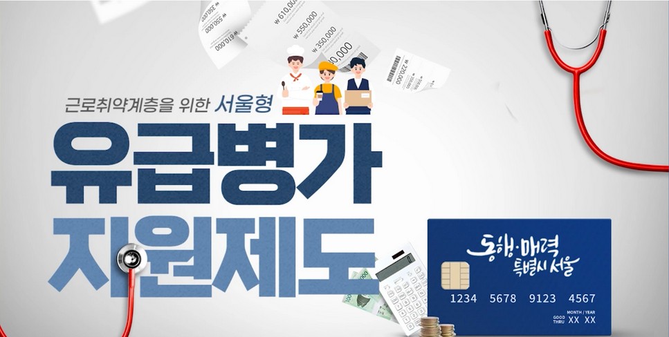 서울시에서 생계를 위해 일하는 취약노동자들이 치료에 힘쓸 수 있도록 지원해주는 정책인 '서울형 유급병가 지원'을 시행합니다. 유급휴가가 없는 일용직 특수형태근로종사자 등이 대상입니다. 병원에서 치료나 검진을 받을 때 생계비를 지원하는 것입니다.