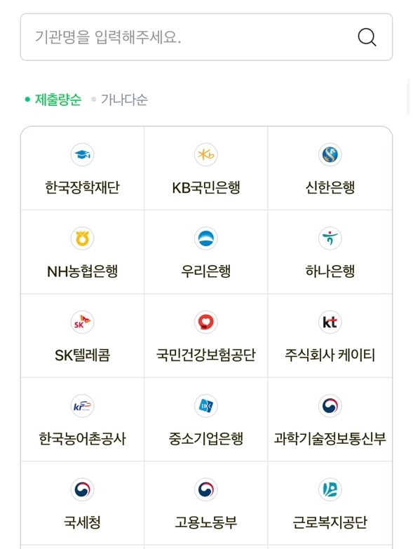 그럼 '제출하기'를 누르면 여기서 바로 해당 기관을 검색해서 제출이 가능합니다.