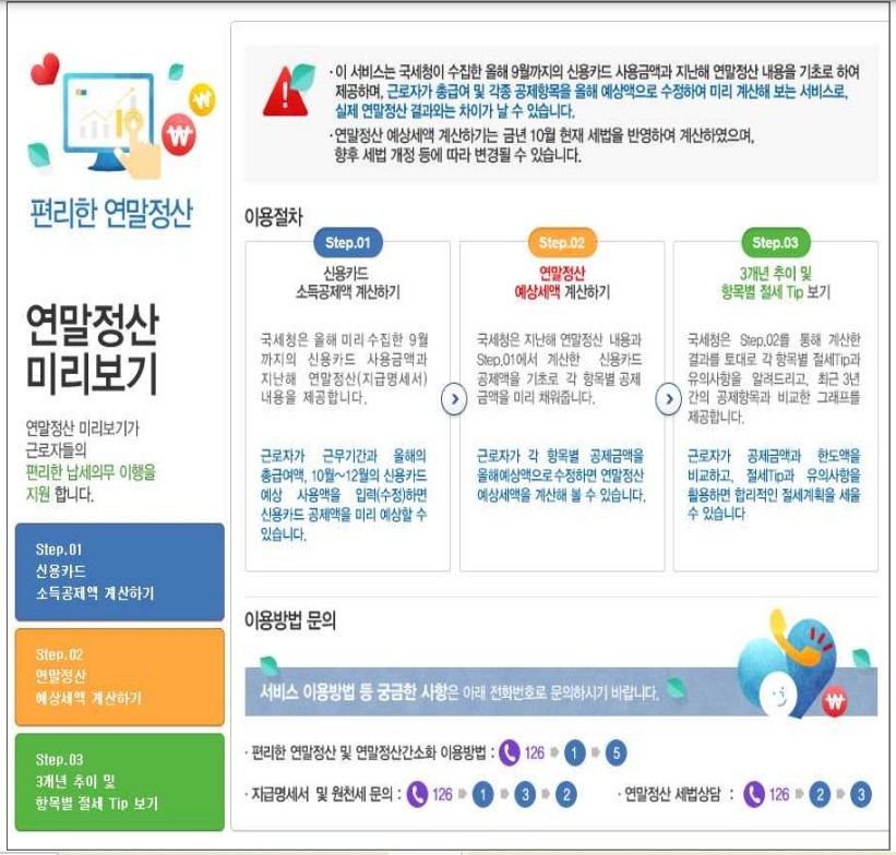 1. 신용카드 소득공제액 계산이 가능합니다.